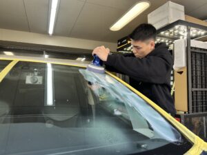 Protec-G 2級フロントガラスの油膜除去、Protec-Gコーティングの認定施工技術者